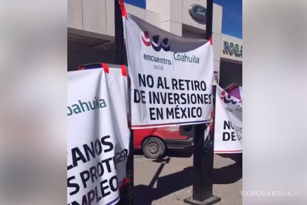 Encuentro Social protesta frente a concesionaria de FORD en Saltillo
