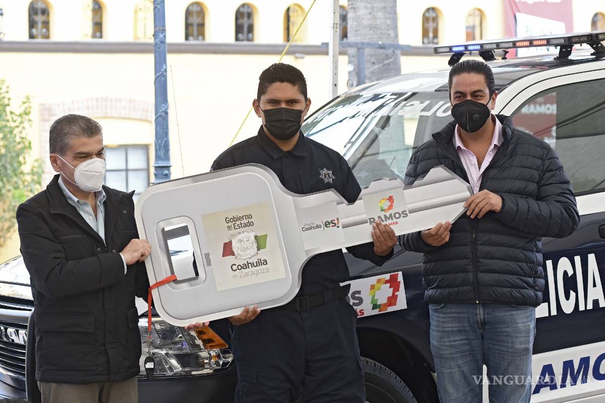 El Gobierno del estado entregó cinco patrullas, cuatro camionetas pick up y un vehículo sedan, para reforzar la seguridad del municipio de Ramos Arizpe, con una inversión de 3.5 millones de pesos.