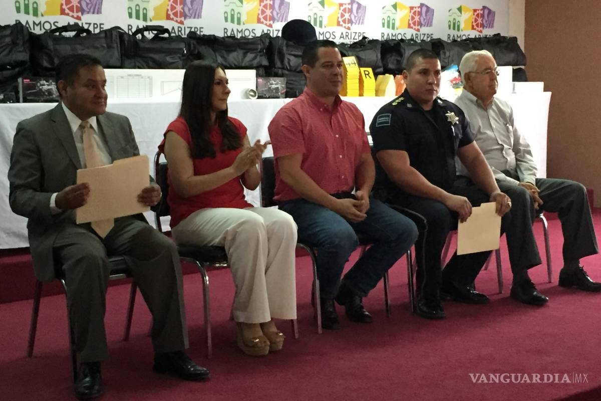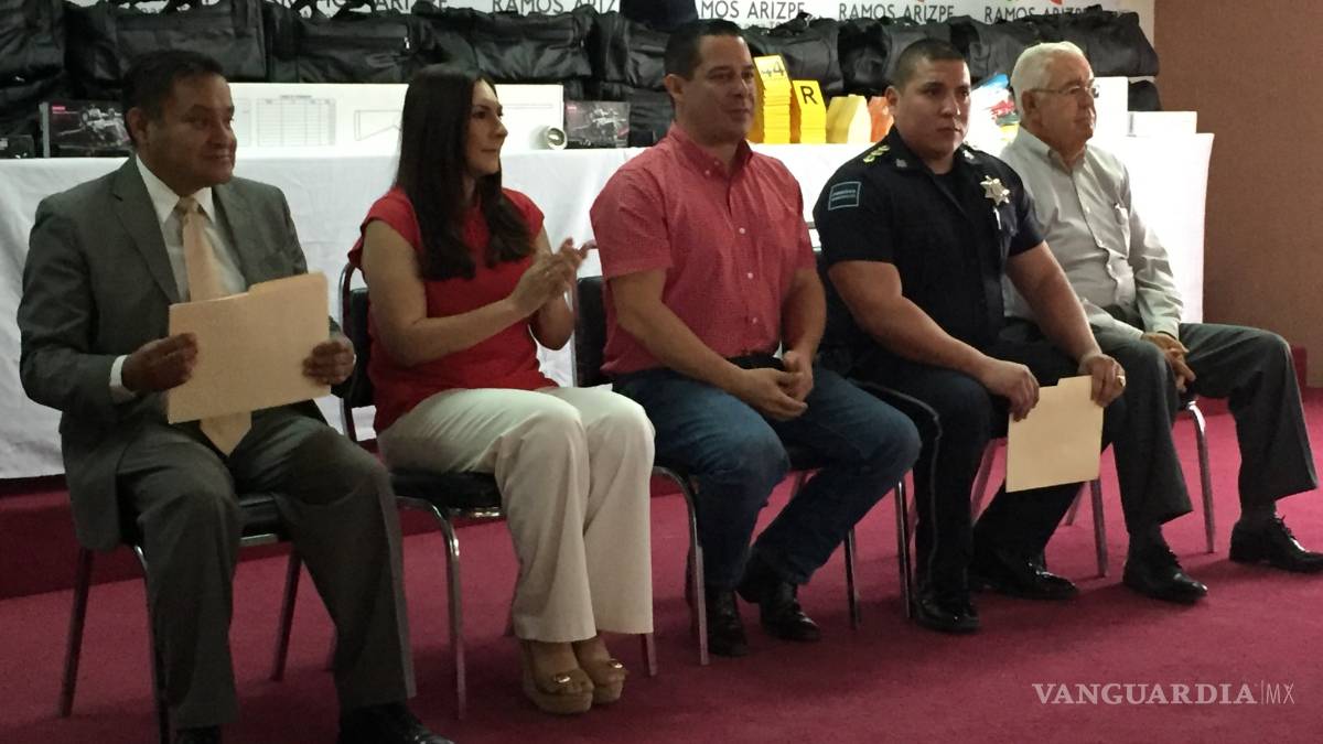 Con una inversión de 3.4 millones de pesos, el Ayuntamiento de Ramos Arizpe entregó esta mañana 40 kits y constancias de capacitación a policías municipales para la implementación del nuevo sistema de justicia penal. El director de Seguridad Pública, Luis Estrada, comentó que los 148 elementos de la corporación están capacitados para aplicar los nuevos mecanismos.