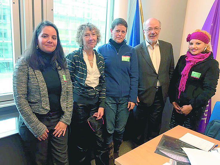 Cristina Auerbach Benavides, directora del colectivo Familia Pasta de Conchos y Esmeralda Saldaña Saldaña, pobladora de Cloete, se reunieron ayer en Bruselas con el diputado europeo José María Terricabras para dar a conocer la situación permanente de las violaciones a los derechos humanos en contra de mineros, sus familias y sus defensores en la Región Carbonífera de Coahuila.