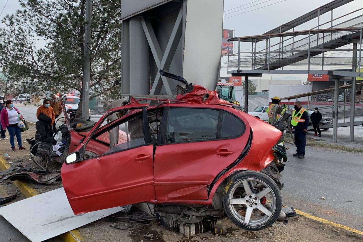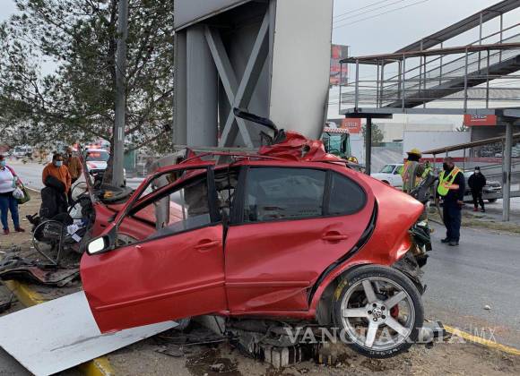 Fallece conductor en hospital tras aparatoso accidente en Saltillo; su auto quedó partido a la mitad