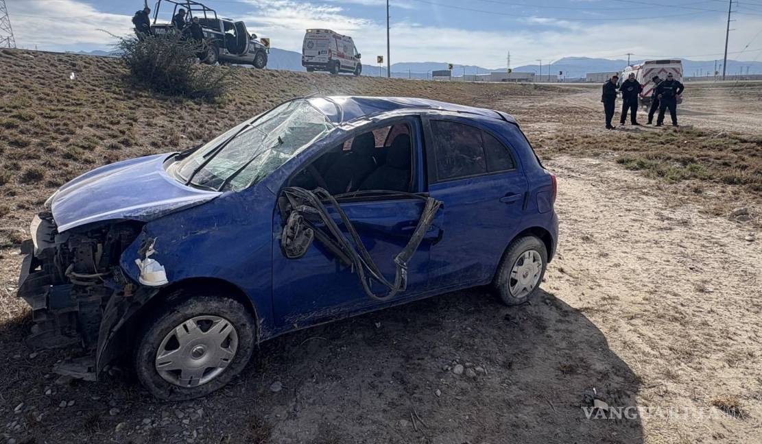 Un accidente automovilístico se registró en la carretera federal 57, en el tramo conocido como la carretera antigua a Monclova, cuando un vehículo compacto que circulaba con dirección a Saltillo salió del camino y terminó volcado.