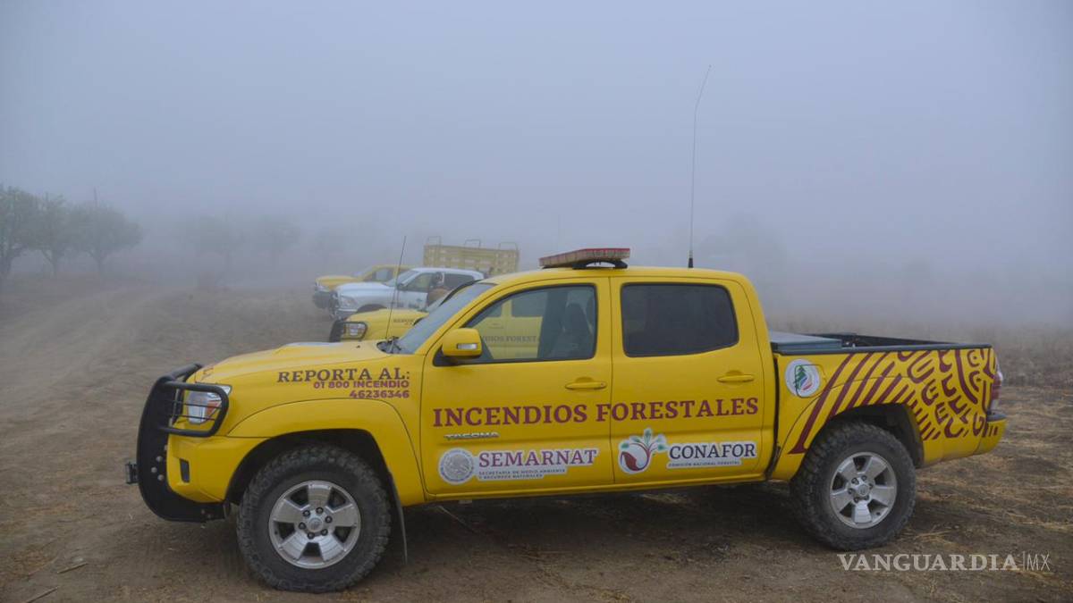 Saltillo, Coahuila.- La llegada del frente frío No. 47 que cubrió con un manto de neblina y rocío la Sierra de Arteaga favorece las labores de combate al incendio que ya cuenta con un 90 por ciento de control.