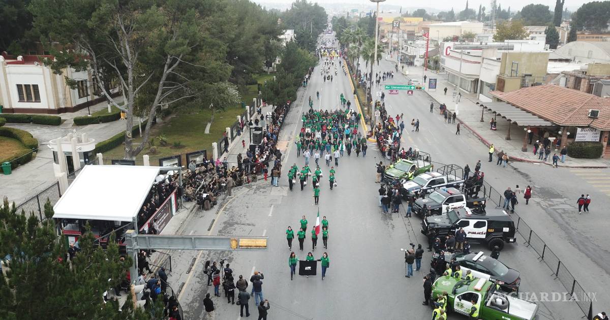 El bulevar Venustiano Carranza, una de las principales vías del municipio de Saltillo fue por donde desfilaron siete grandes contingentes, cinco de ellos correspondientes a instituciones de nivel medio, medio superior y profesional, el resto conformado por elementos de la Comisión de Seguridad del ayuntamiento, Bomberos, Protección Civil, Clubes de carros de colección y la Asociación de Charros.
