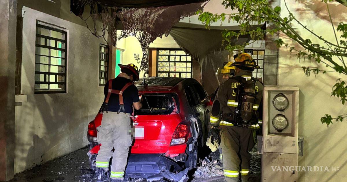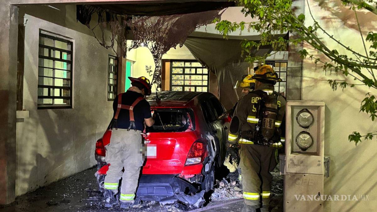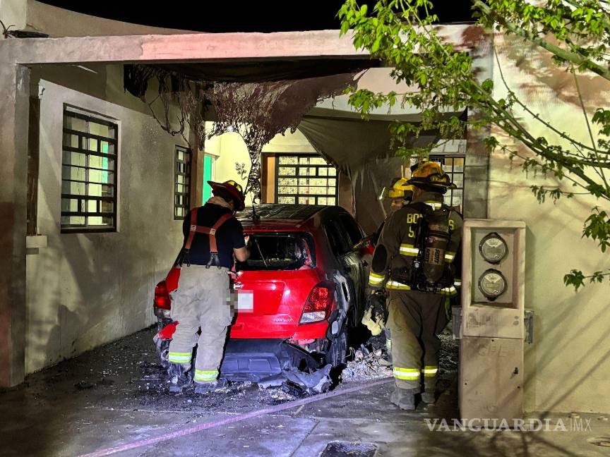 Fuego arrasa con camioneta dentro de un cochera en Saltillo; autoridades investigan causa