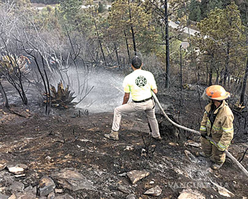 45 BRIGADISTAS de Protección Civil, Bomberos y de Semarnat controlaron el incendio en la Sierra de Arteaga