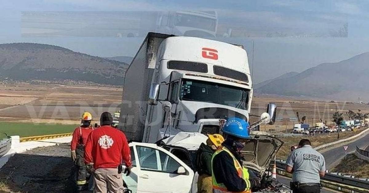 Fue el sábado cuando aproximadamente a las 8:00 horas, un VW Jetta fue impactado por el tráiler que se desplazaba con dirección a Matehuala, donde viajaba una familia de Nuevo León