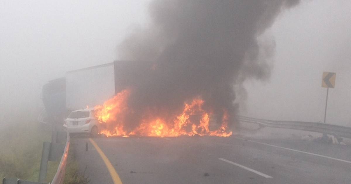 Mientras que, en el kilómetro 36, el operador de un tráiler perdió el control de su unidad y se estrelló contra la barrera de contención, ocasionando más percances, donde una camioneta chocó contra el camión y comenzó a incendiarse.