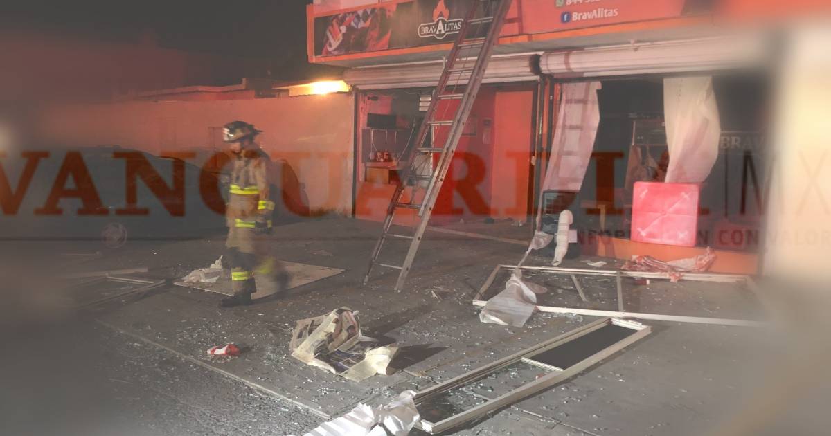 Saltillo.- Una fuerte explosión en un negocio de comida denominado “Bravalitas” sobre el bulevar Sección 38 y Torre de Marfi, en la entrada de la colonia Privadas La Torre, dejó como saldo un trabajador lesionado, luego de que cerca de las 6:30 de la tarde de este martes abrieran el local y prendieran una mecha sin darse cuenta que había una cantidad considerable de gas acumulado, al parecer por una fuga.