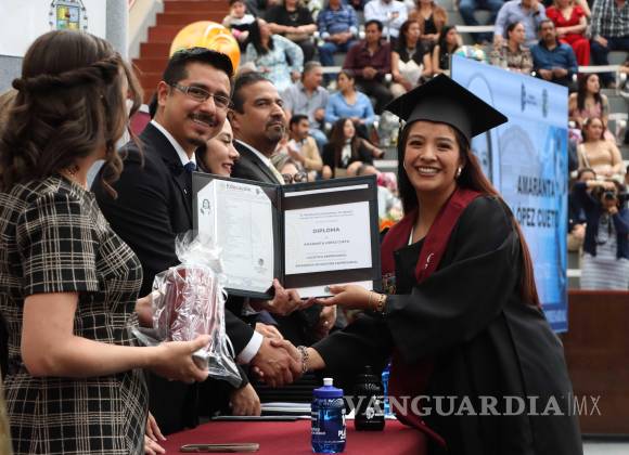 En representación del Ayuntamiento de Saltillo, la décima regidora Yajaira Briones Aguilar destacó que los graduados se enfrentan a un entorno laboral con amplias oportunidades, impulsado por la atracción de inversiones promovida por los gobiernos estatal y municipal.