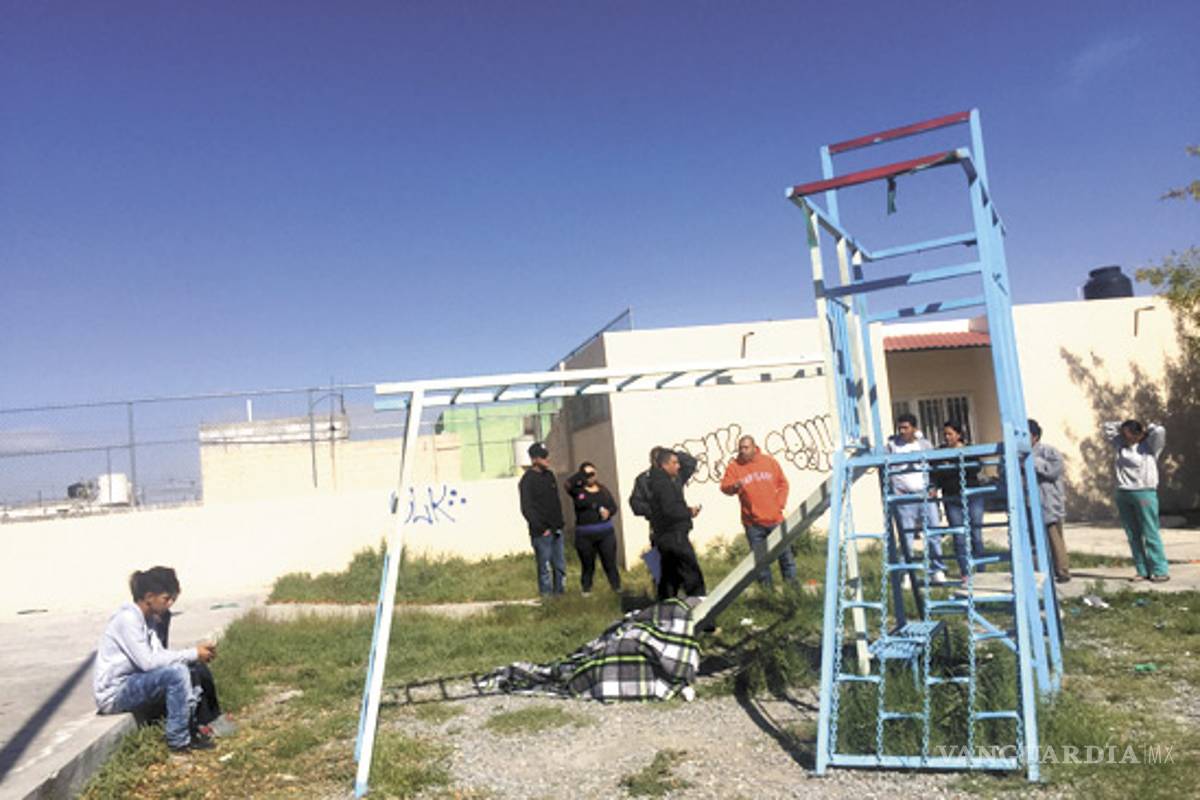 Tras no localizarlo en su vivienda fueron a los juegos infantiles ubicados en las calles Martín de Zavala y Joaquín de Velazco, del Fraccionamiento Urdiñola. Ahí lo vieron recostado en la resbaladilla, pensando que estaría dormido lo movieron, pero no respondía.