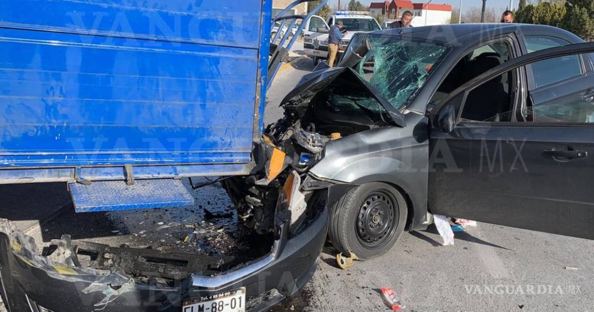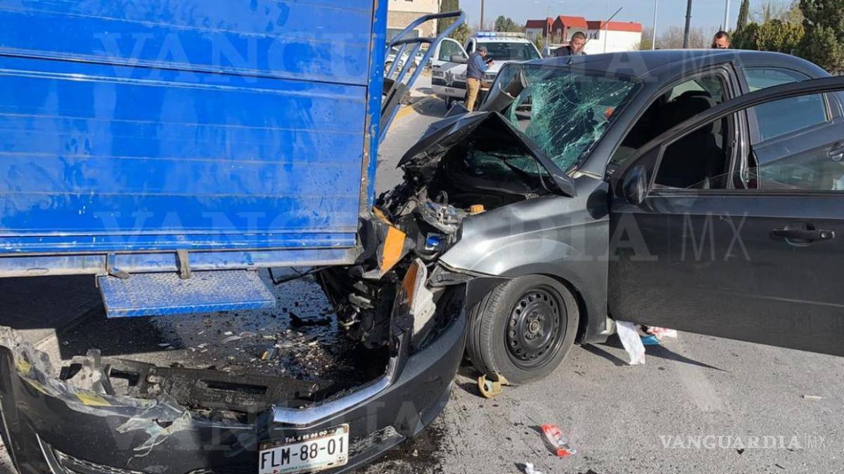 Hombre queda prensado tras aparatoso choque en Saltillo