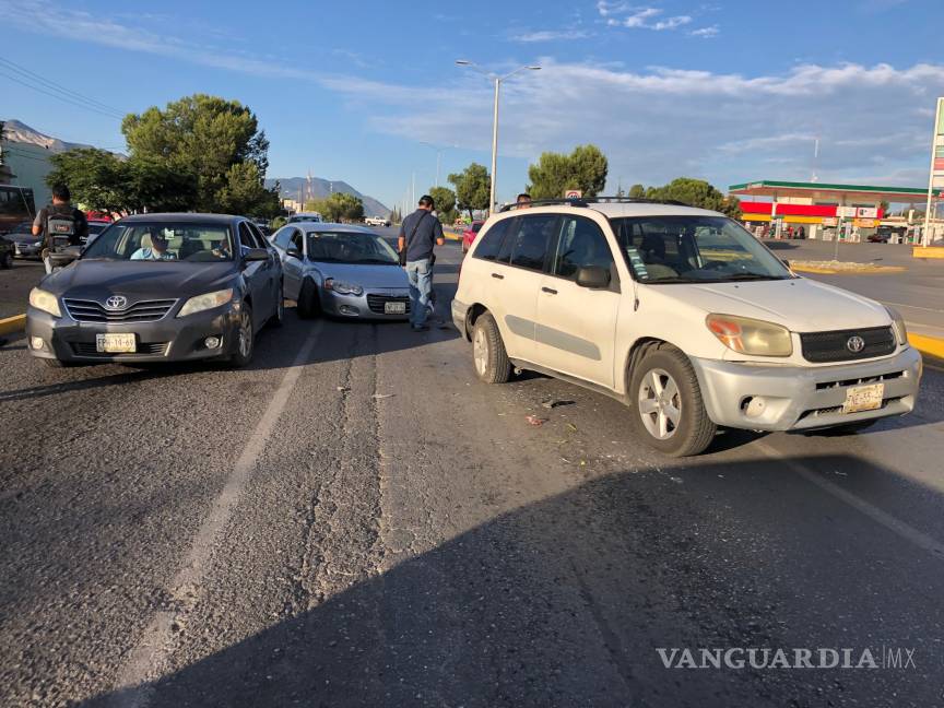 Apurado por llegar a su trabajo, un hombre no se fijó si traía algún coche al lado para rebasar, lo que provocó que invadiera carril, provocando un accidente múltiple que paralizó la circulación por varios minutos.