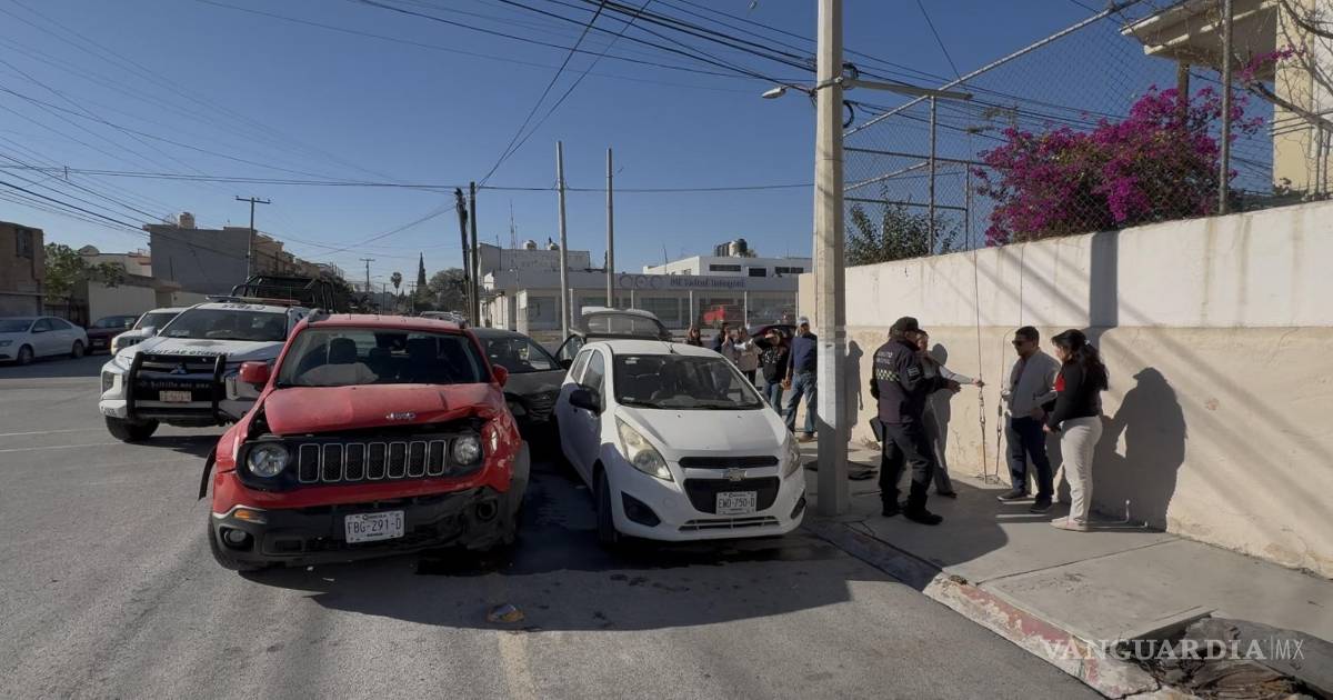 Ignora alto y provoca choque en Saltillo; tres vehículos quedan dañados