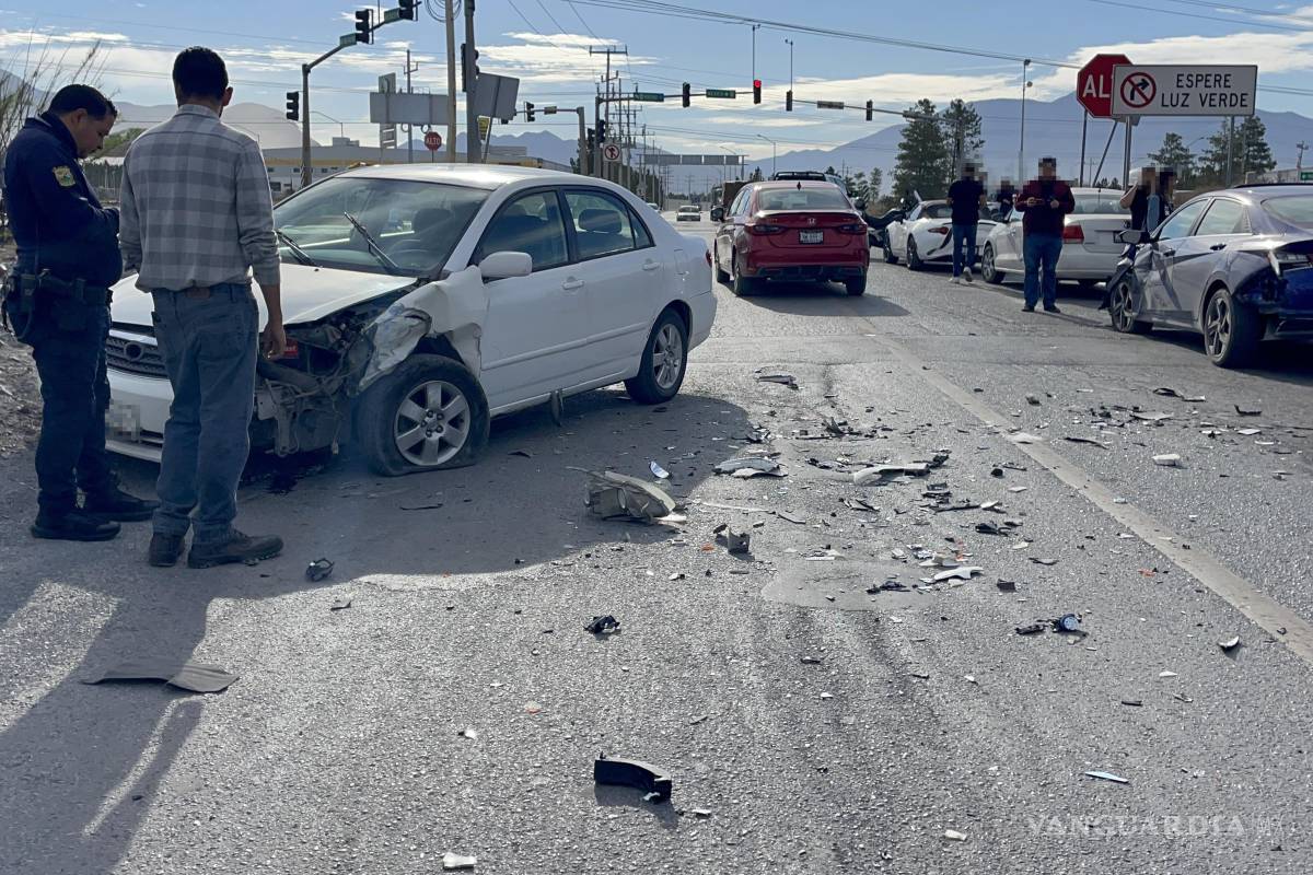 El exceso de velocidad y la falta de precaución al volante provocaron un aparatoso accidente, en el entronque del libramiento Óscar Flores Tapia con el camino al Seminario, al oriente de Saltillo. Cuatro vehículos resultaron con daños materiales de consideración, aunque no se reportaron personas lesionadas.
