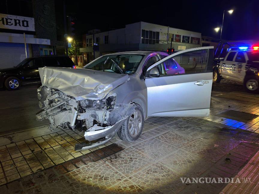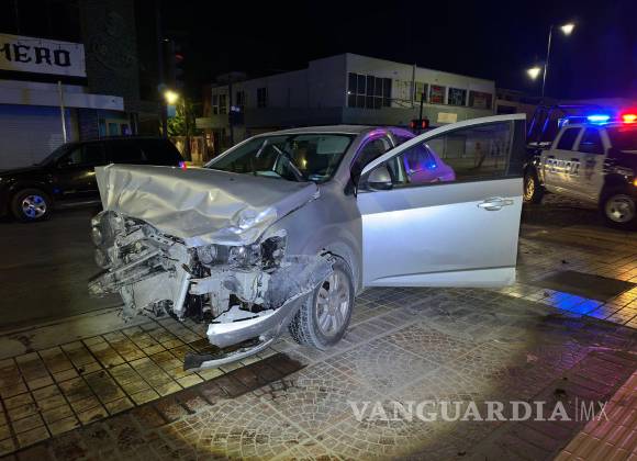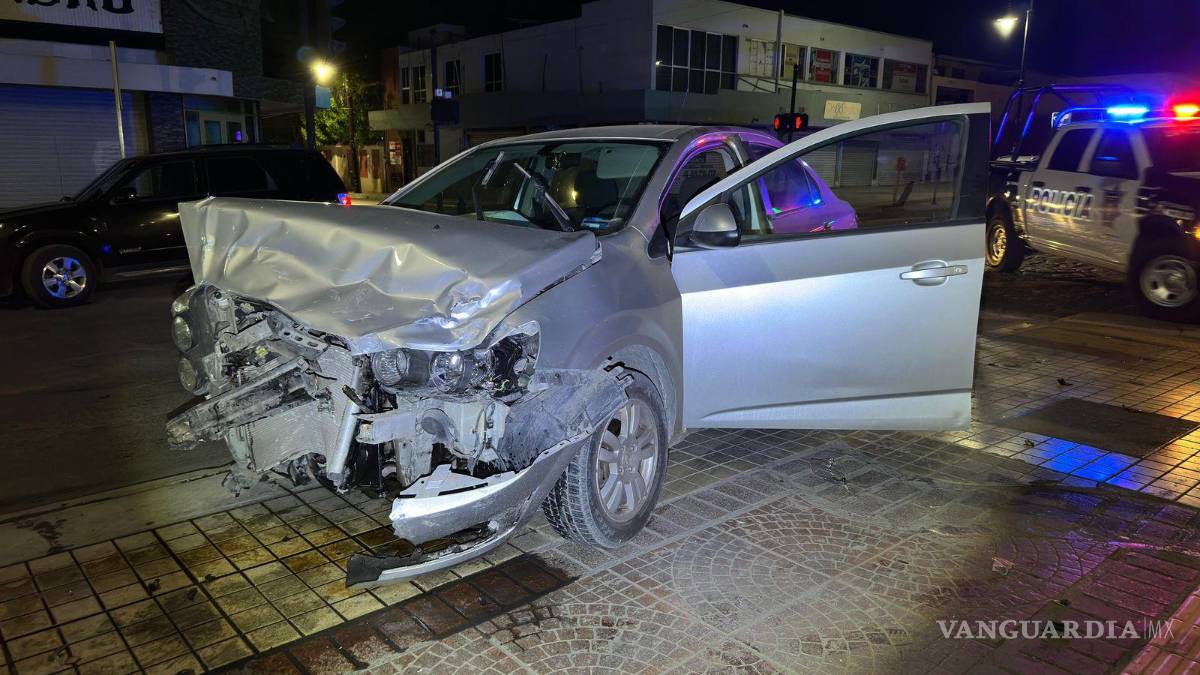 Un fuerte accidente vial se registró en calles del primer cuadro de Saltillo cuando la conductora de un Chevrolet Sonic impactó su vehículo contra una patrulla de la Policía Municipal. A pesar de lo aparatoso del percance, no se reportaron personas lesionadas.
