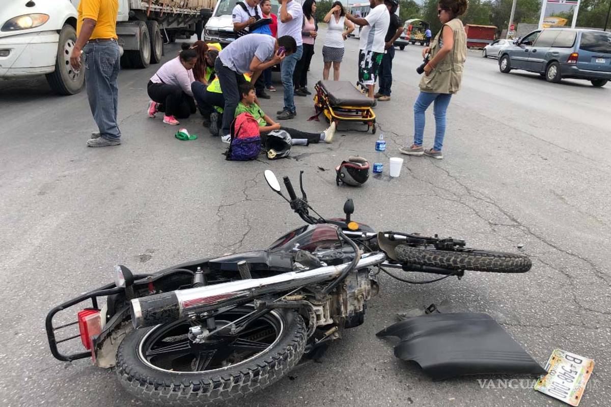 Un hombre que conducía una motociclista y el niño de 9 años que lo acompañaba, resultaron lesionados tras sufrir un accidente sobre el bulevar Vito Alessio Robles a la altura de la colonia Omega, en donde fueron impactados de frente por un taxi.