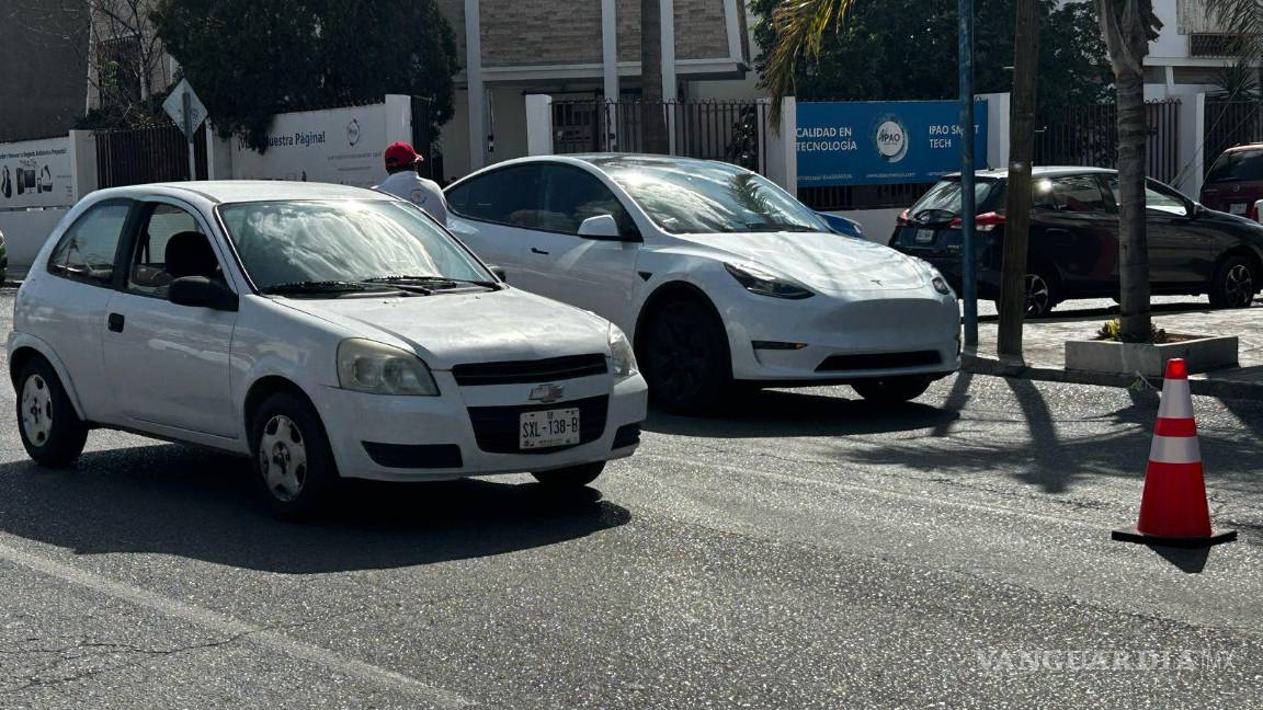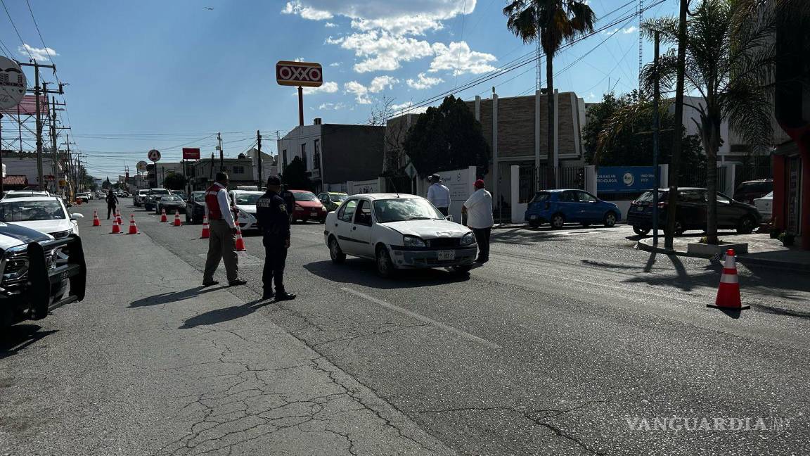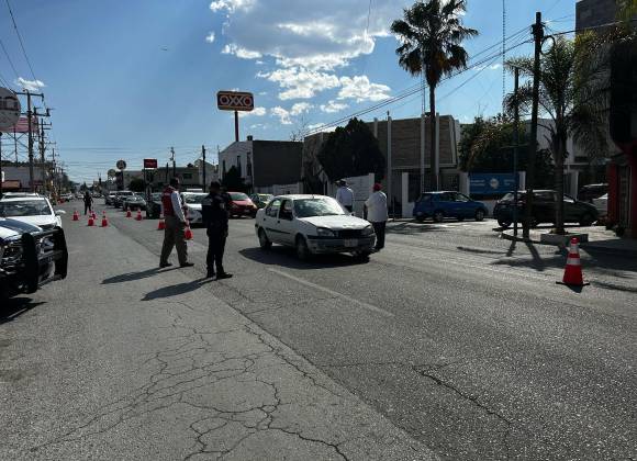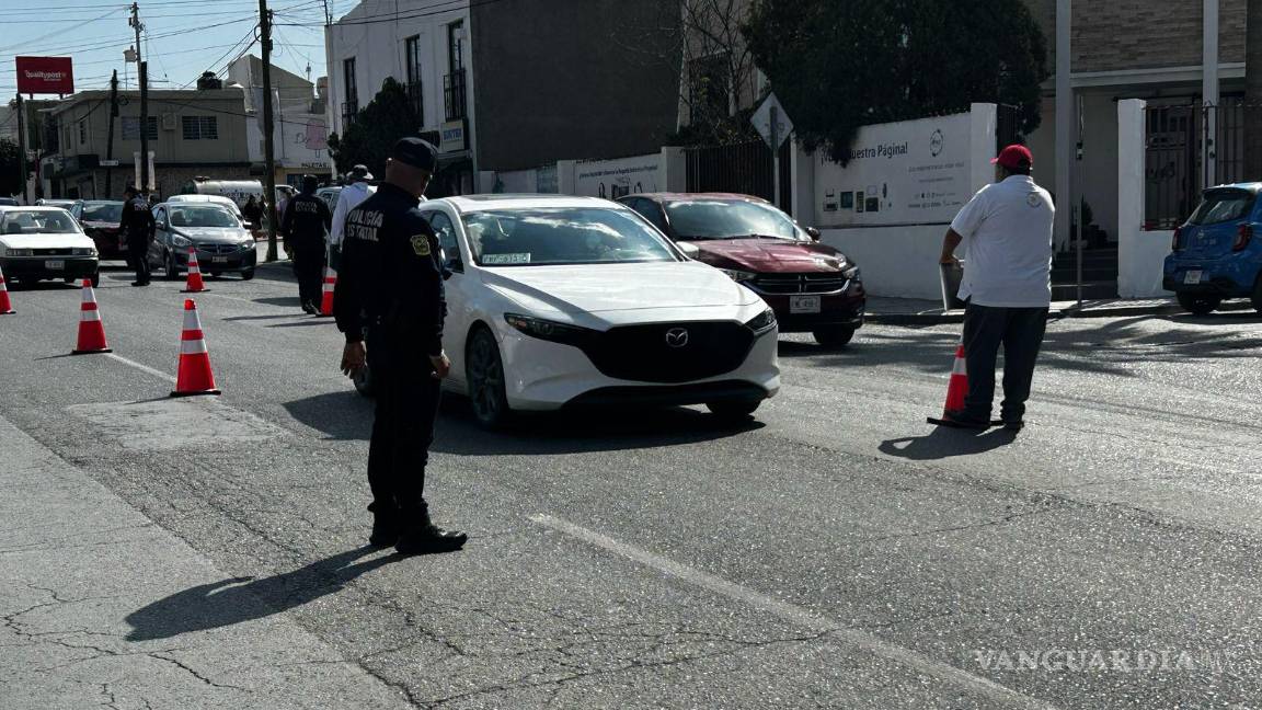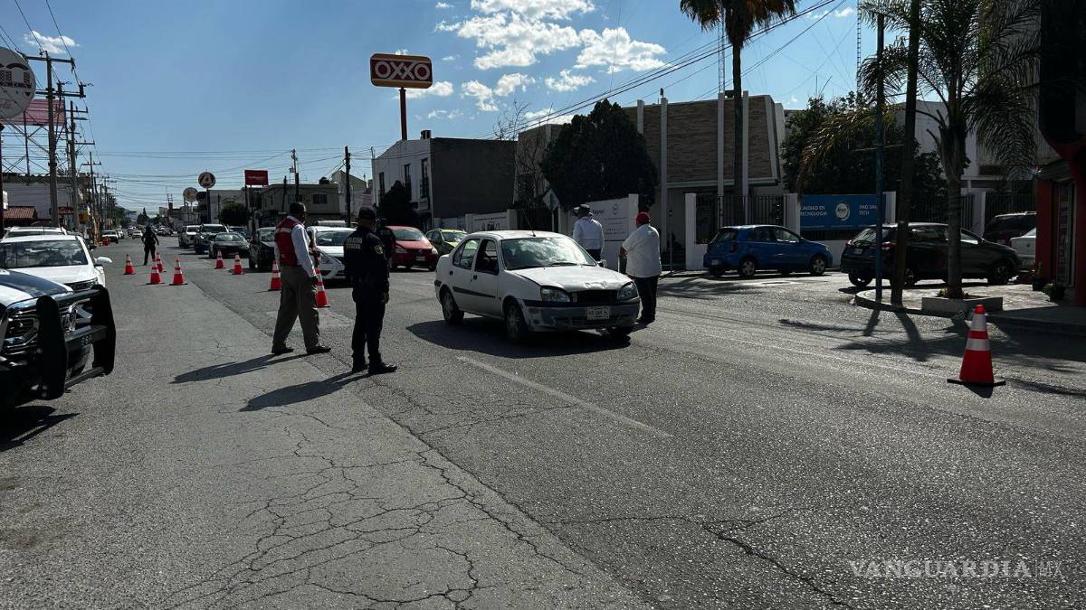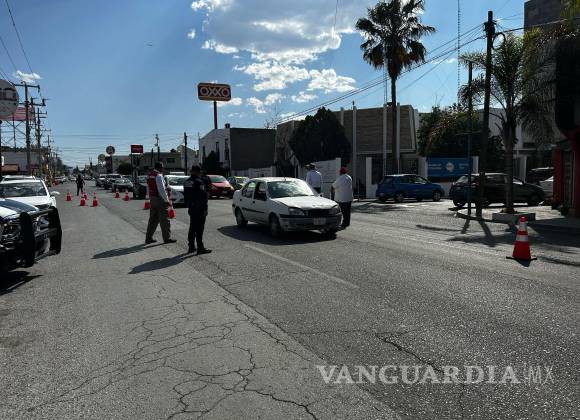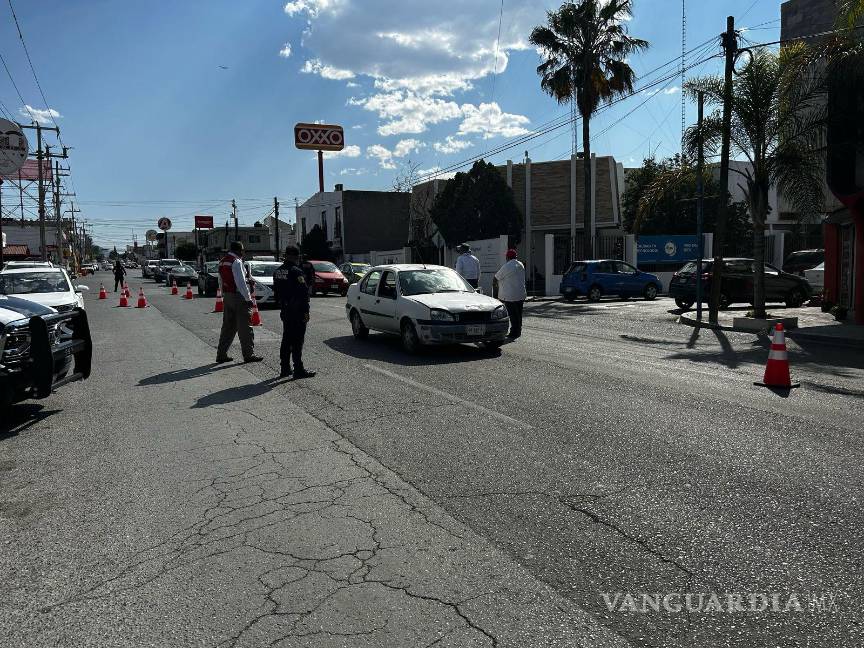 En la calle Mariano Abasolo, en Saltillo, se observó la tarde de este martes 1 de marzo a policías estatales advirtiendo a los automovilistas posibles infracciones si no se pagan placas nuevas.