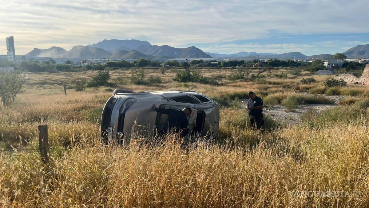 Imprudencia de conductor deja dos lesionados en volcadura, en Saltillo