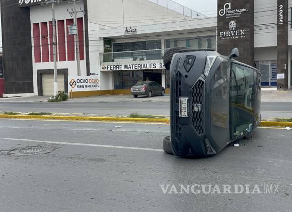 Imprudencia; joven quita derecho de vía a camioneta y provoca aparatoso accidente en bulevar de Saltillo