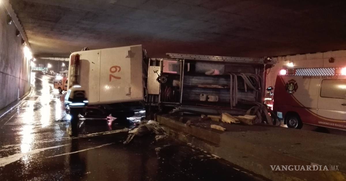 $!Imprudencia provoca volcadura de bomberos en Saltillo