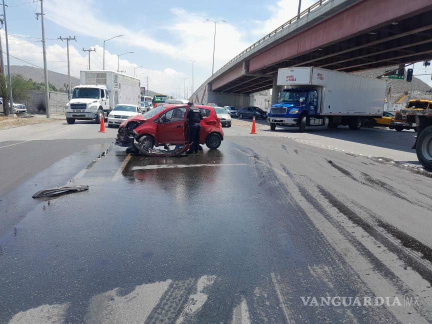 De acuerdo con el reporte, el tráiler salió de la carretera Los Pinos e invadió uno de los carriles de la carretera Saltillo-Monterrey, lo que provocó que el vehículo compacto se estrellara contra el tanque de diésel de la unidad de carga.