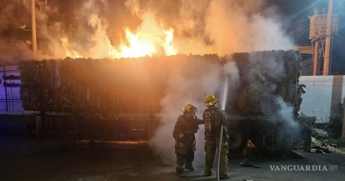 Incendio consume tráiler cargado de cartón en Saltillo; sin lesionados