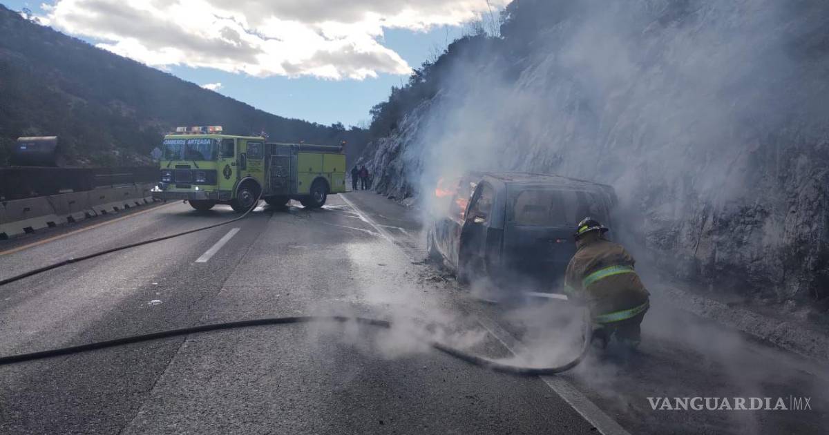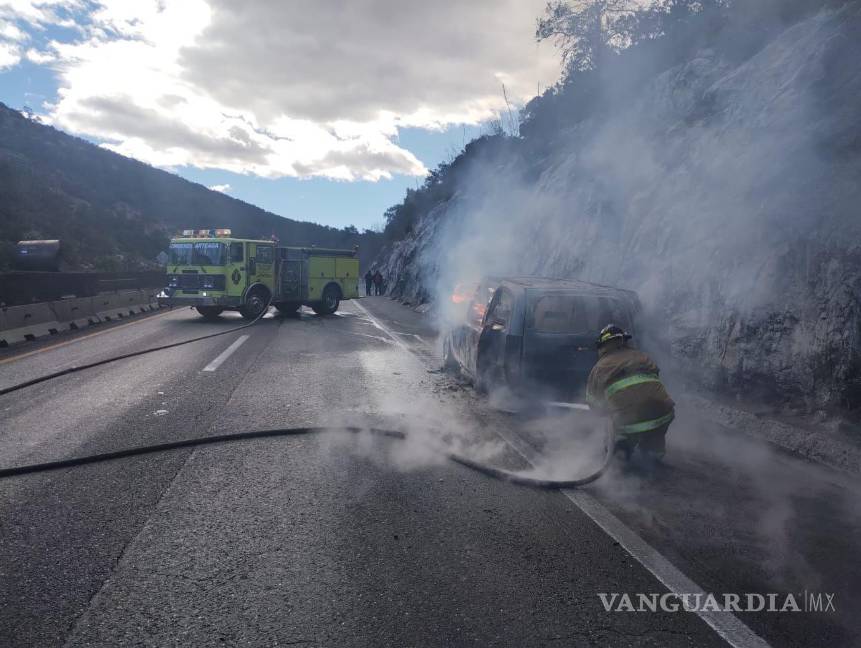 El viaje de una familia originaria de Tamaulipas se vio interrumpido abruptamente la mañana de este sábado cuando su camioneta Dodge Caravan, se incendió sobre la carretera 57, a la altura del kilómetro 226, en el tramo conocido como Los Chorros.