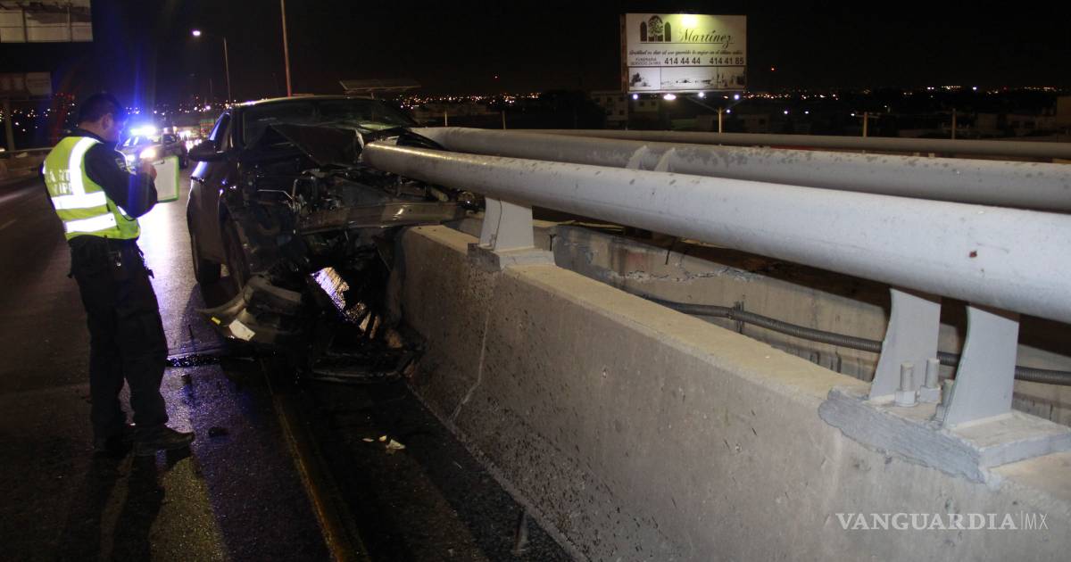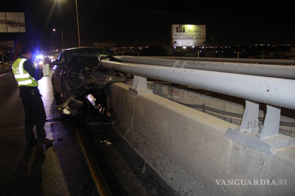 Fue pasadas las 02:00 horas que elementos de Tránsito Municipal recibieron el reporte de que sobre el distribuidor, en el carril de norte a sur, en la intersección que sale al bulevar Fundadores y continúa hacia el Periférico LEA; se encontraba un vehículo chocado.