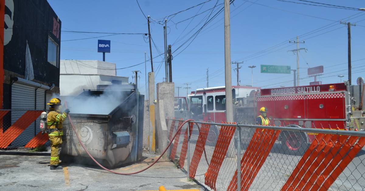 Personal de bomberos acudió al reporte de un incendio en un comercio sobre Mariano Abasolo antes del cruce con Luis Echeverría Álvarez, en pocos minutos terminaron con el fuego al interior de un contenedor de basura.