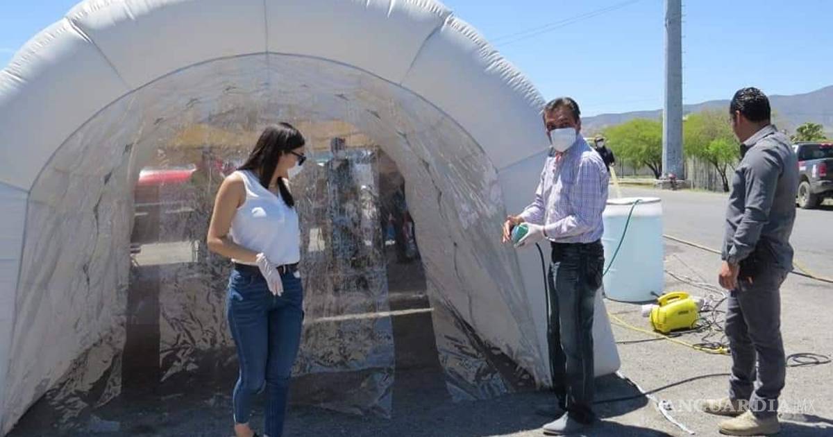 Aunque técnicamente la Secretaría de Salud no recomienda su uso, la Administración Municipal de Parras de la Fuente, colocó este lunes dos túneles sanitizantes; uno en el acceso principal del poblado y uno más en la Plaza de Armas