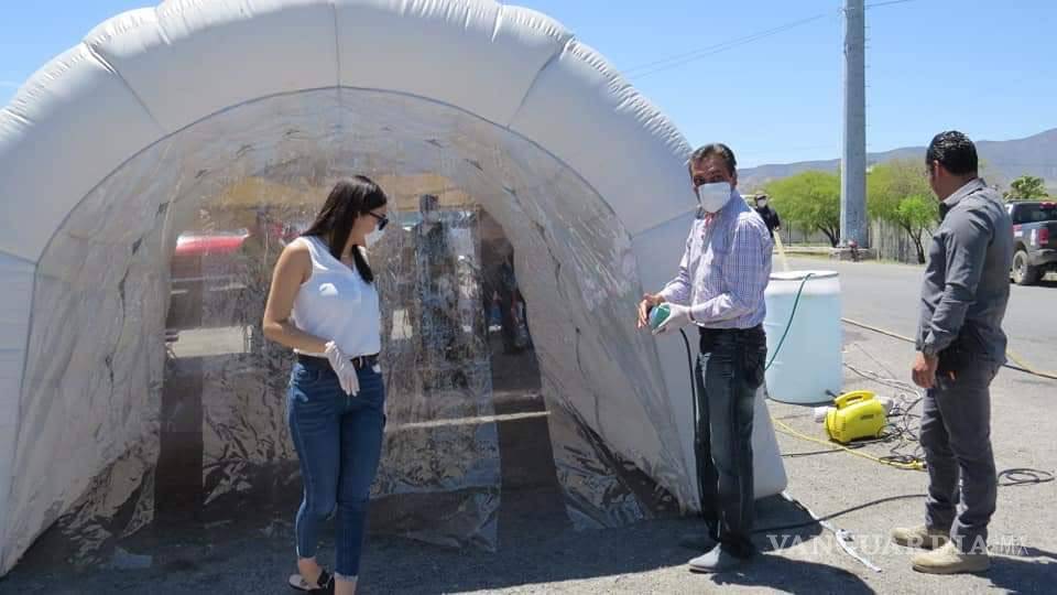 Instalan en Parras túneles sanitizantes para prevención de COVID-19