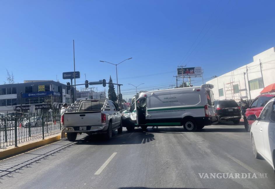 Una ambulancia del Instituto Mexicano del Seguro Social (IMSS) y una camioneta particular resultaron involucradas en un choque que ocasionó caos vial sobre el bulevar Venustiano Carranza, en Saltillo.