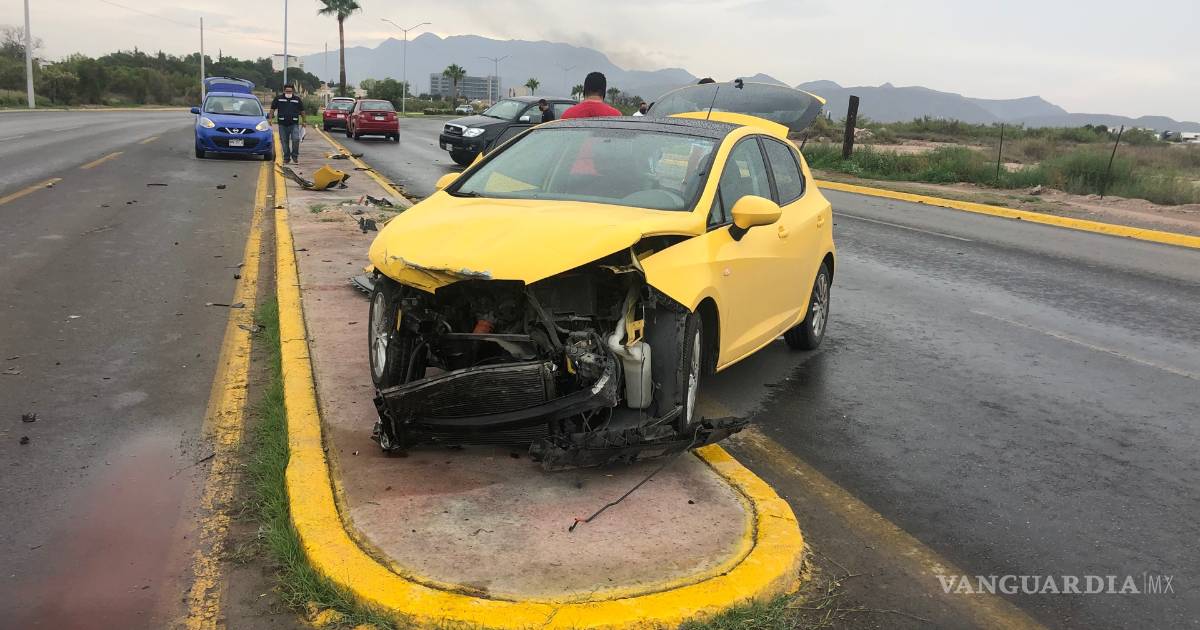 El pavimento mojado a causa de las lluvias que ocurrieron al norte de Saltillo, originaron el percance