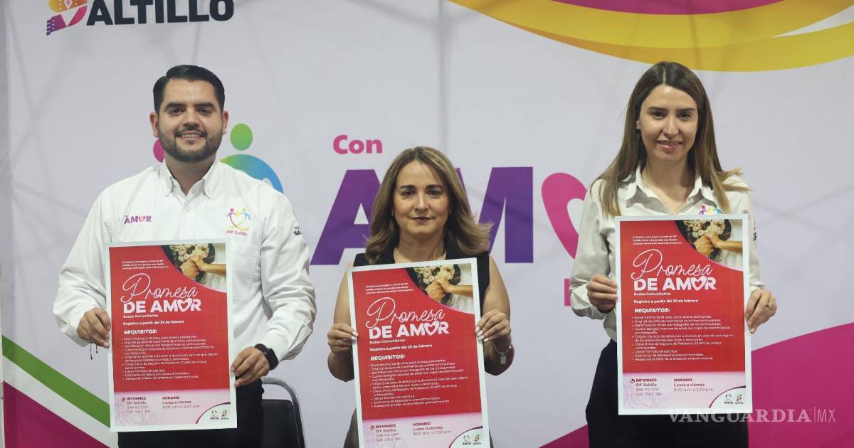 El Gobierno Municipal, a través del DIF Saltillo, invita a las parejas interesadas en contraer matrimonio a registrarse en el programa “Promesa de Amor”, que permite legalizar el estado civil con una cuota de recuperación mínima.