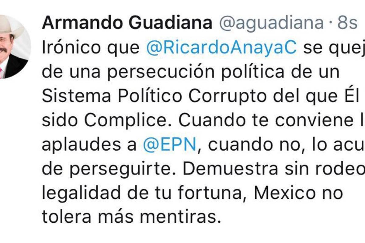 A través de sus redes sociales, el ahora postulado por Morena para la segunda fórmula por el Senado de la República, dijo que la supuesta persecución que ha denunciado Ricardo Anaya, proviene de un sistema corrupto del cual ha sido cómplice dicho candidato.