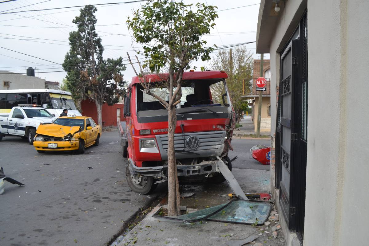 En el accidente registrado alrededor de las 9 de la mañana de ayer se señaló cómo responsable del mismo a Jetzael “N”, de 17 años, quien circulaba por Eugenio Benavides a bordo de una grúa Volkswagen Worker.
