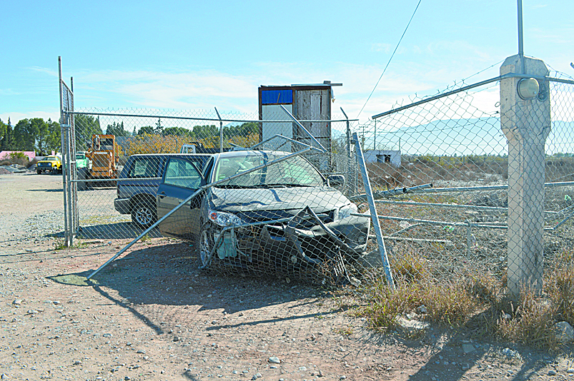 A un joven se le hizo fácil conducir el auto de su mamá a exceso de velocidad por la carretera a Los González y sufrió una volcadura, hasta quedar completamente “enredado” con una malla ciclónica.