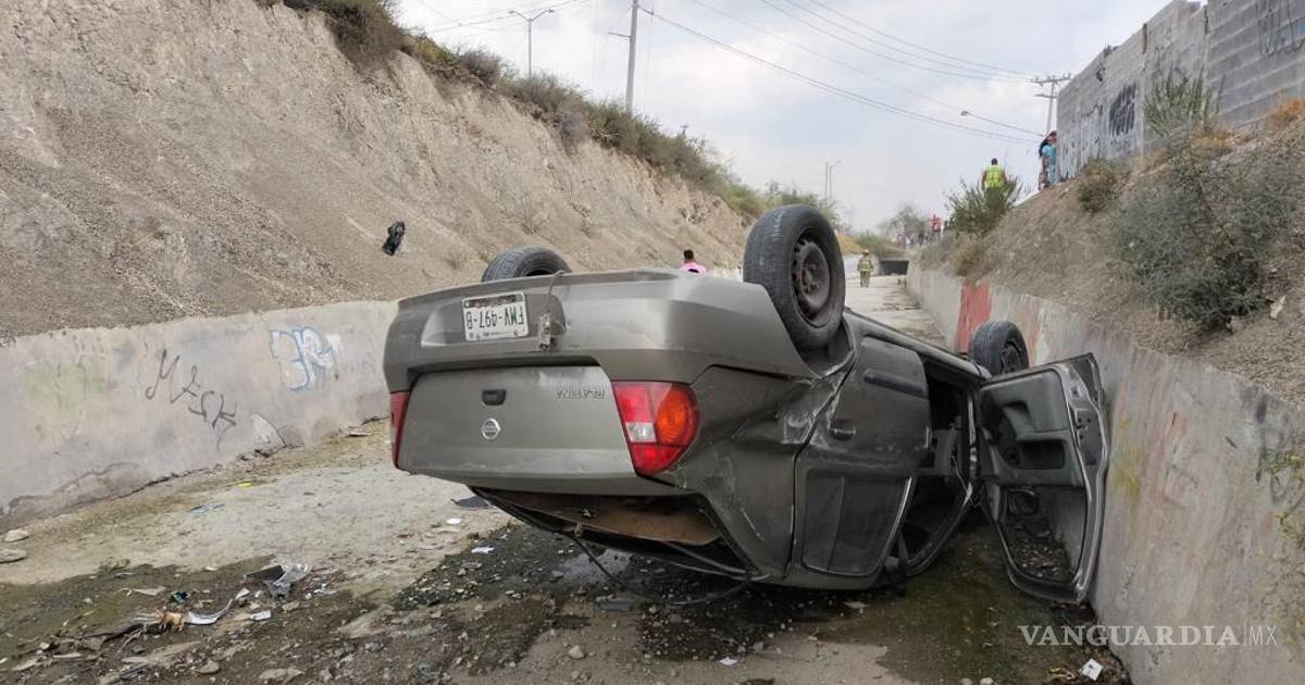 Joven de 20 años escapa ileso tras volcar su vehículo en Ramos Arizpe