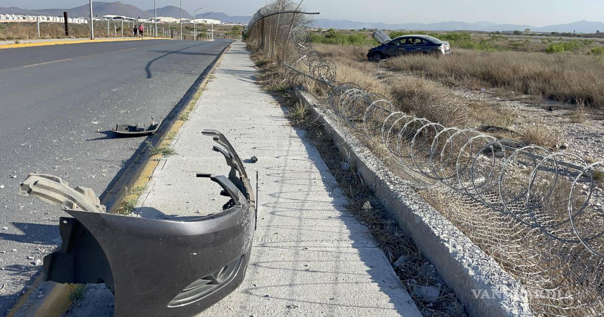 Un hombre identificado como Rafael Omar “N”, de 23 años, sufrió una salida de camino y aparente volcadura en la calle Hacienda de Queréndaro, terminando en el interior de las instalaciones del aeropuerto Plan de Guadalupe, en Ramos Arizpe.