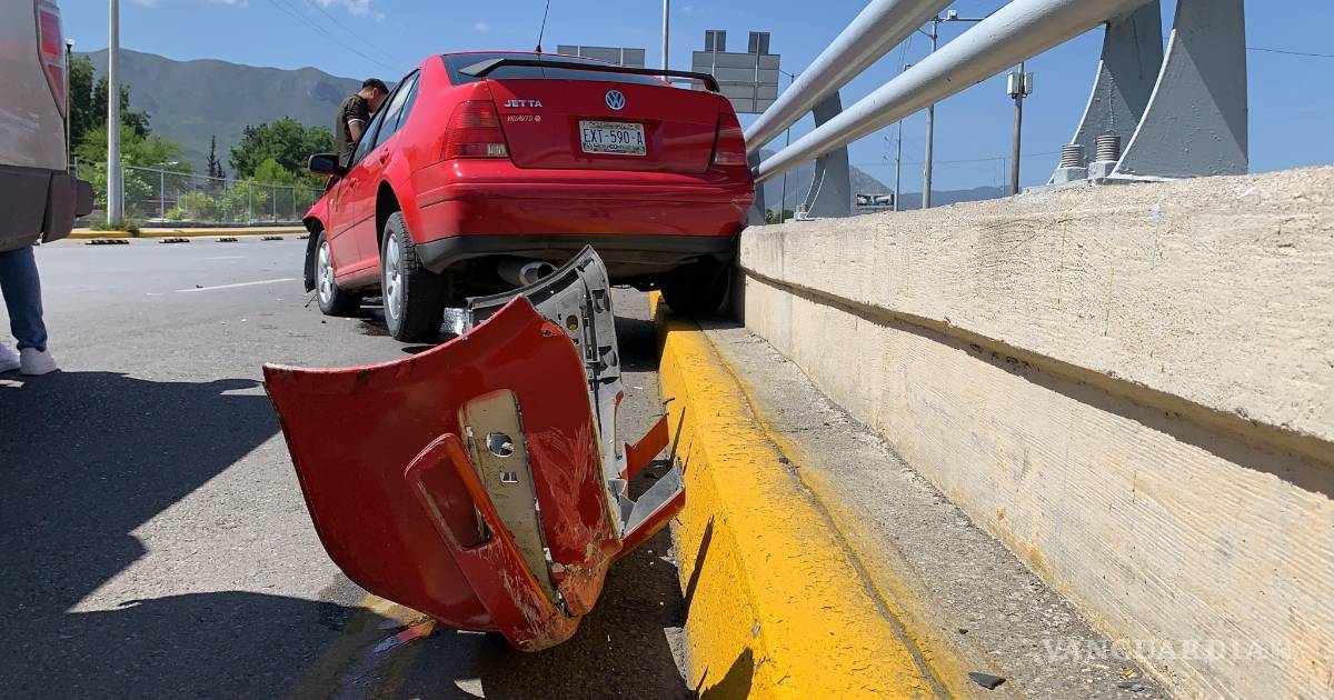 Evitando atropellar a unos perritos, una joven terminó por estrellarse contra la barrera de contención cuando circulaba por la lateral del periférico, antes de llegar a Valle Dorado.