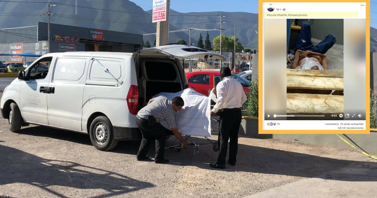 Mediante una trasmisión en vivo desde su Facebook, un joven pidió ayuda para un hombre que el día de hoy se encontró sin vida a las afueras de un Oxxo en el sur de Saltillo