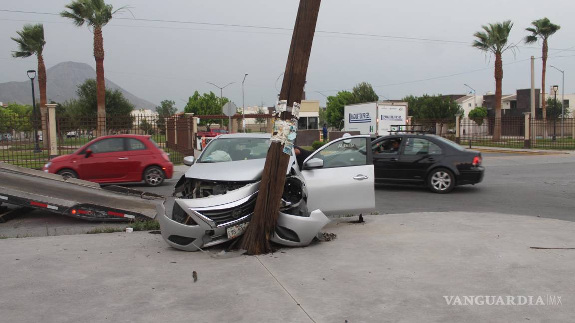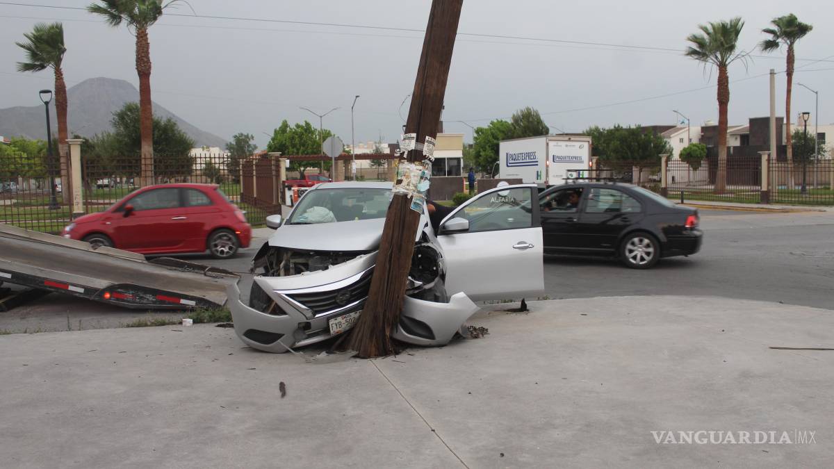 Joven se impacta contra poste y resulta lesionada, en Saltillo