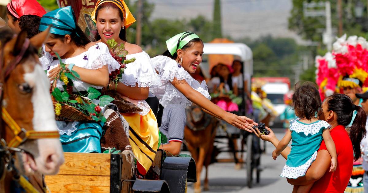 Algo entrañable de la tradición parrense durante este desfile, es ver a las pequeñas Vendimiadoras con sus trajes blancos, pañoletas de colores, mandiles y zapatos con calcetas, cargaron las canastas repletas de racimos de uva. Según la mitología romana, estas son las trabajadoras de la ‘pisca’ de viñedos que llevan a la Reina Iris, las uvas para que comience la molienda artesanal para después degustar un hipnotizante vino junto al Dios Baco o Dionisio, el inspirador de la locura ritual y el éxtasis.