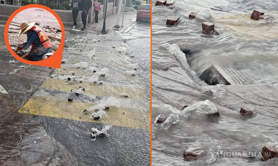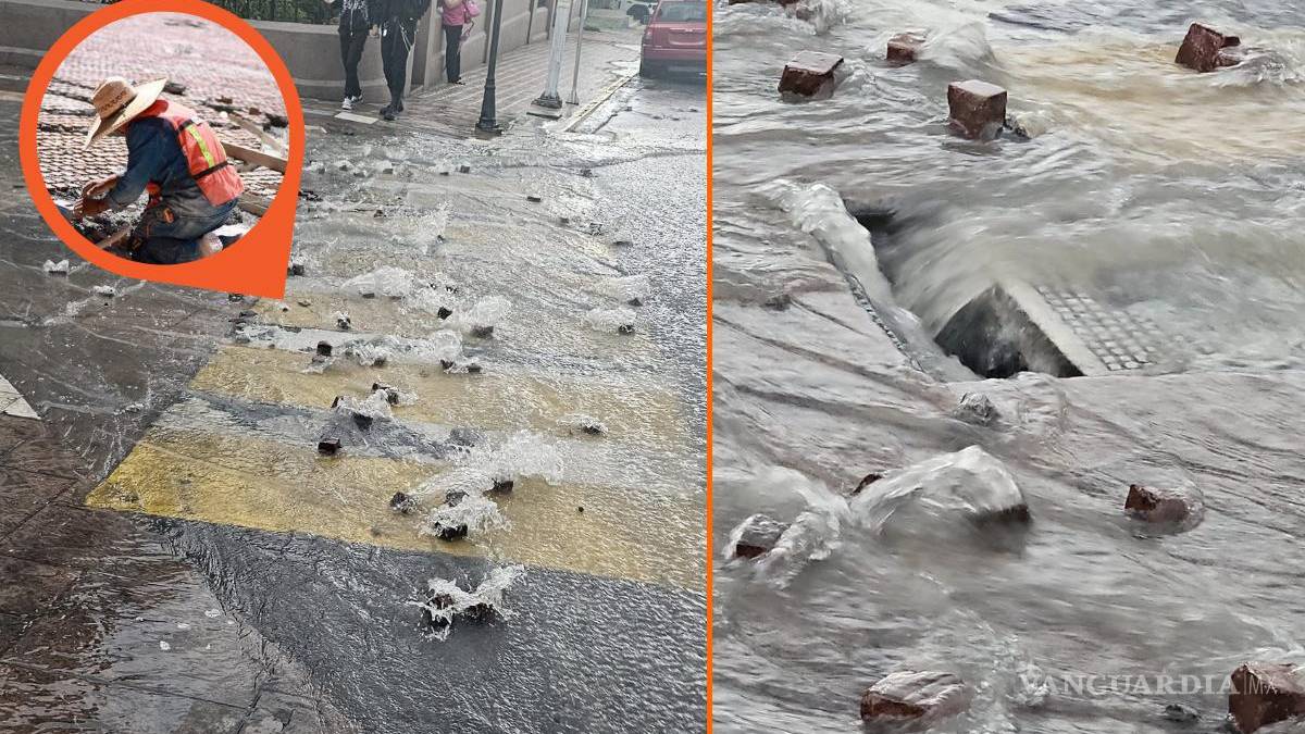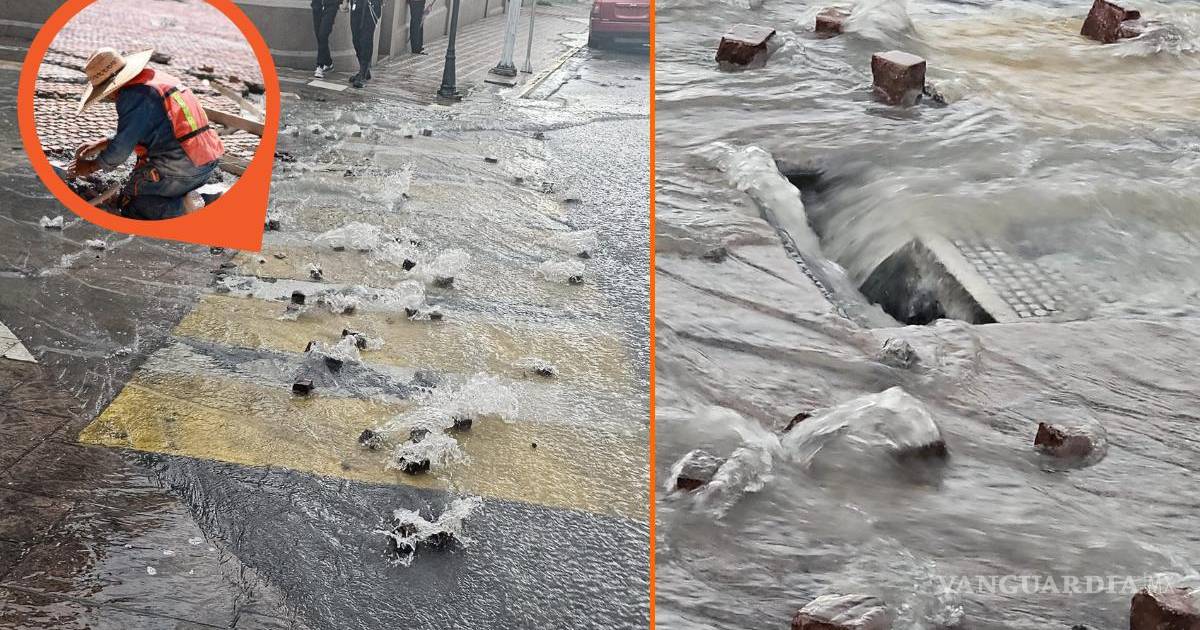 ‘Las piedras rodando se encuentran’: Lluvia desarma adoquines de Paseo Capital en Saltillo exhiben video en redes