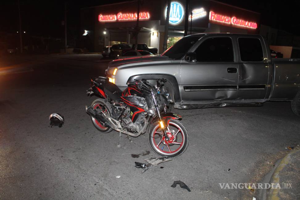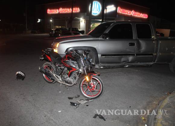 Un motociclista resultó con golpes en la espalda y los brazos luego de ser derribado por una camioneta cuyo conductor no tomó las debidas precauciones al incorporarse al bulevar Miguel Hidalgo, en Saltillo.