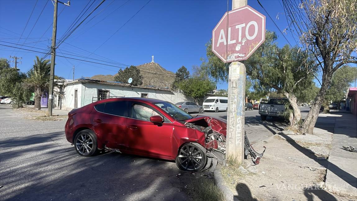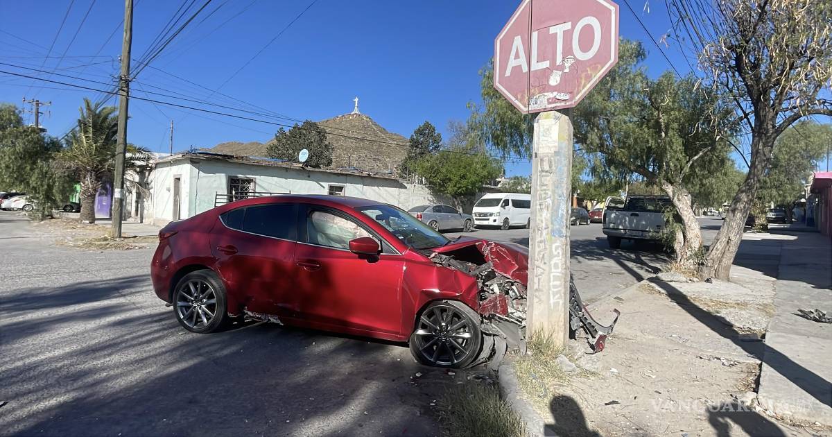 Un automóvil Mazda terminó estrellado contra un poste luego de un accidente registrado en la colonia Guayulera, en Saltillo; el vehículo era conducido por Eduardo ¨N¨, de 35 años.