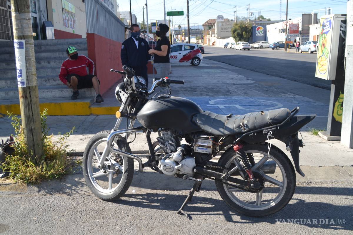 Le quita derecho de paso y tira a motociclista en zona centro de Saltillo