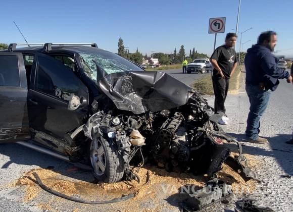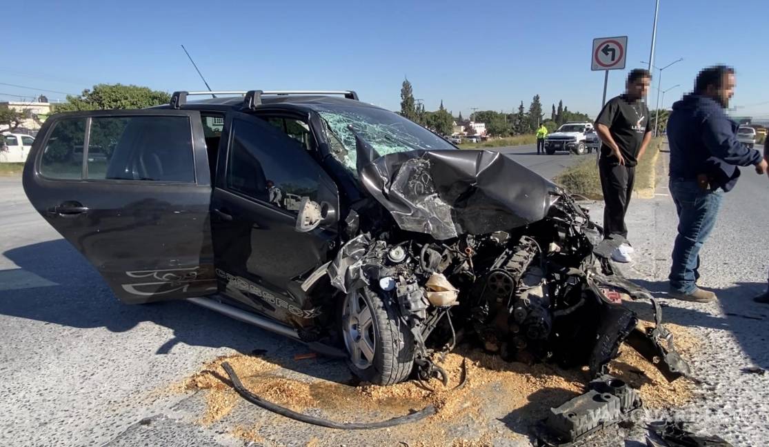 Le quita el derecho de paso y se estrella contra revolvedora al sur de Saltillo; conductor resulta lesionado