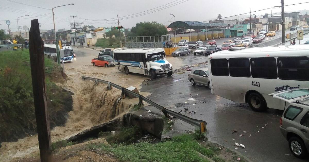 Una de las zonas más afectadas es el bulevar Otilio González, a la altura de la colonia La Herradura, donde se reportan autos varados y el tránsito lento a la altura del arroyo que pasa por el sector.